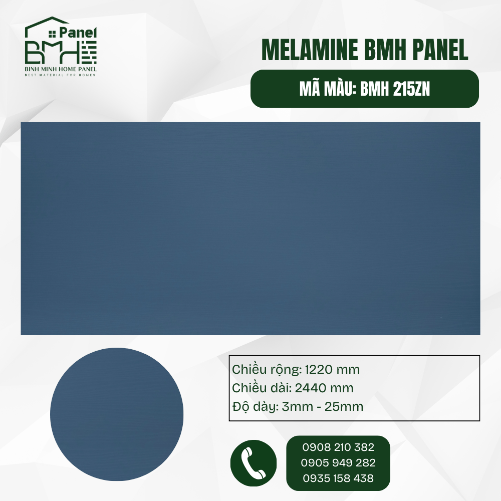 Mã BMH 215ZN là biểu tượng của sự sang trọng và quyền quý với sắc Xanh Than đậm đà, kết hợp cùng bề mặt ZN siêu lì mịn. Sản phẩm không chỉ mang lại chiều sâu hút mắt cho không gian mà còn mang đến cảm giác tinh tế, hiện đại nhờ khả năng chống bám vân tay ưu việt. Đây là lựa chọn đẳng cấp cho hệ tủ nội thất, phòng làm việc hoặc các mảng nhấn kiến trúc mang phong cách Luxury và Modern.