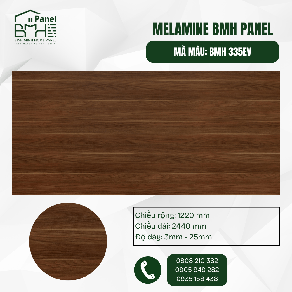 BMH 335EV quyến rũ với tông màu Nâu đỏ mận độc đáo và hệ vân gỗ Óc chó Plum cuộn sóng đầy tính nghệ thuật. Được trang bị bề mặt EV dập nổi đồng nhất tinh xảo, sản phẩm mang lại trải nghiệm xúc giác chân thực và vẻ đẹp sang trọng, ấm nồng, là lựa chọn hoàn hảo cho những không gian nội thất cao cấp muốn tìm kiếm sự khác biệt và đẳng cấp.