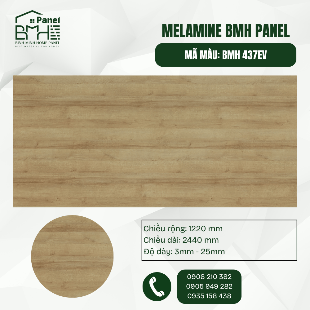 Mã màu BMH 437EV sở hữu vẻ đẹp tinh khôi của dòng Sồi Riviera với tông màu vàng kem sáng đầy tinh tế. Sự kết hợp giữa các đường vân gỗ thanh thoát và bề mặt EV (vân nổi) chân thực tạo nên một không gian sống hiện đại, trẻ trung và tràn đầy năng lượng. Đây là lựa chọn hoàn hảo để nới rộng diện tích thị giác cho những căn hộ chung cư hoặc phòng ngủ có diện tích khiêm tốn.