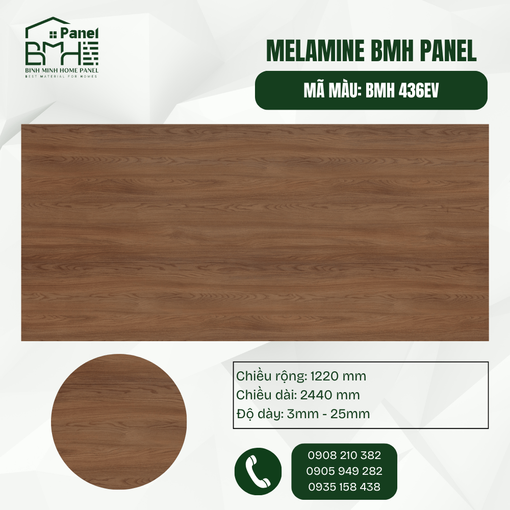 Mã màu BMH 436EV mang vẻ đẹp cổ điển và đẳng cấp với tông Nâu Sồi Kitami đậm đà. Sự kết hợp hoàn hảo giữa các đường vân gỗ uốn lượn tự nhiên và bề mặt EV (vân nổi) giúp sản phẩm toát lên vẻ sang trọng, ấm cúng cho không gian sống. Đây là giải pháp tối ưu cho những thiết kế nội thất yêu cầu sự tinh tế, chiều sâu và tính thẩm mỹ cao như phòng khách, phòng làm việc hoặc các dự án khách sạn cao cấp.