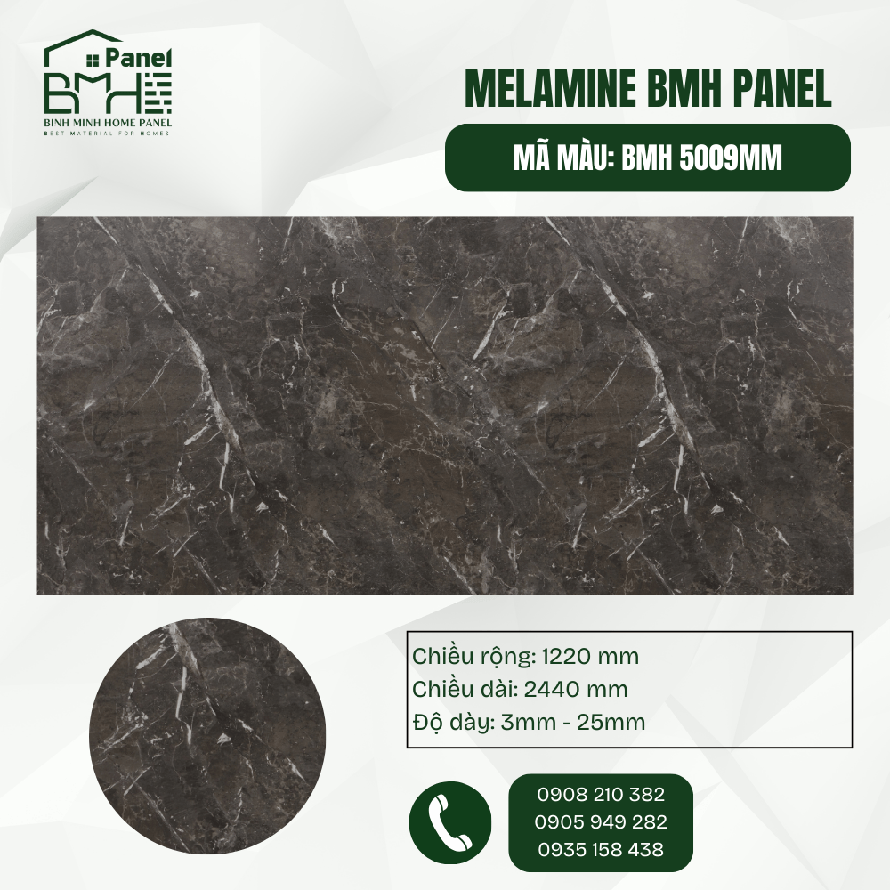 Mã BMH 5009MM: Đẳng cấp và huyền bí với vân đá cẩm thạch đen Trano kết hợp cùng các dải vân trắng tia chớp đầy chiều sâu. Bề mặt MM mờ mịn giúp tôn vinh vẻ đẹp hiện đại, chống bám bẩn hiệu quả, là lựa chọn số một cho những không gian nội thất sang trọng, phá cách.