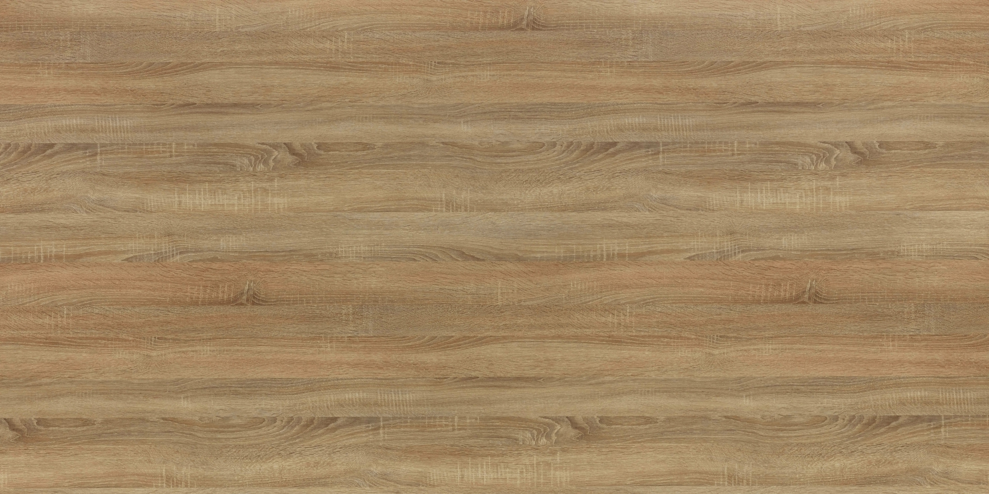 Họa tiết: Điểm đặc trưng của dòng Sồi Sonoma là các vết xước ngang (cross-fire). Nhìn kỹ bạn sẽ thấy các vạch ngang nhỏ cắt qua vân gỗ, mô phỏng dấu vết của lưỡi cưa máy xẻ gỗ. Chi tiết này làm cho tấm ván trông "thật" và tự nhiên hơn.