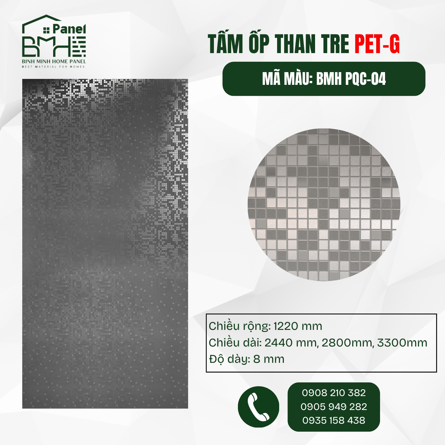 BMH PQC-04 - PET 3D BẠC INOX MOSAIC Ô VUÔNG