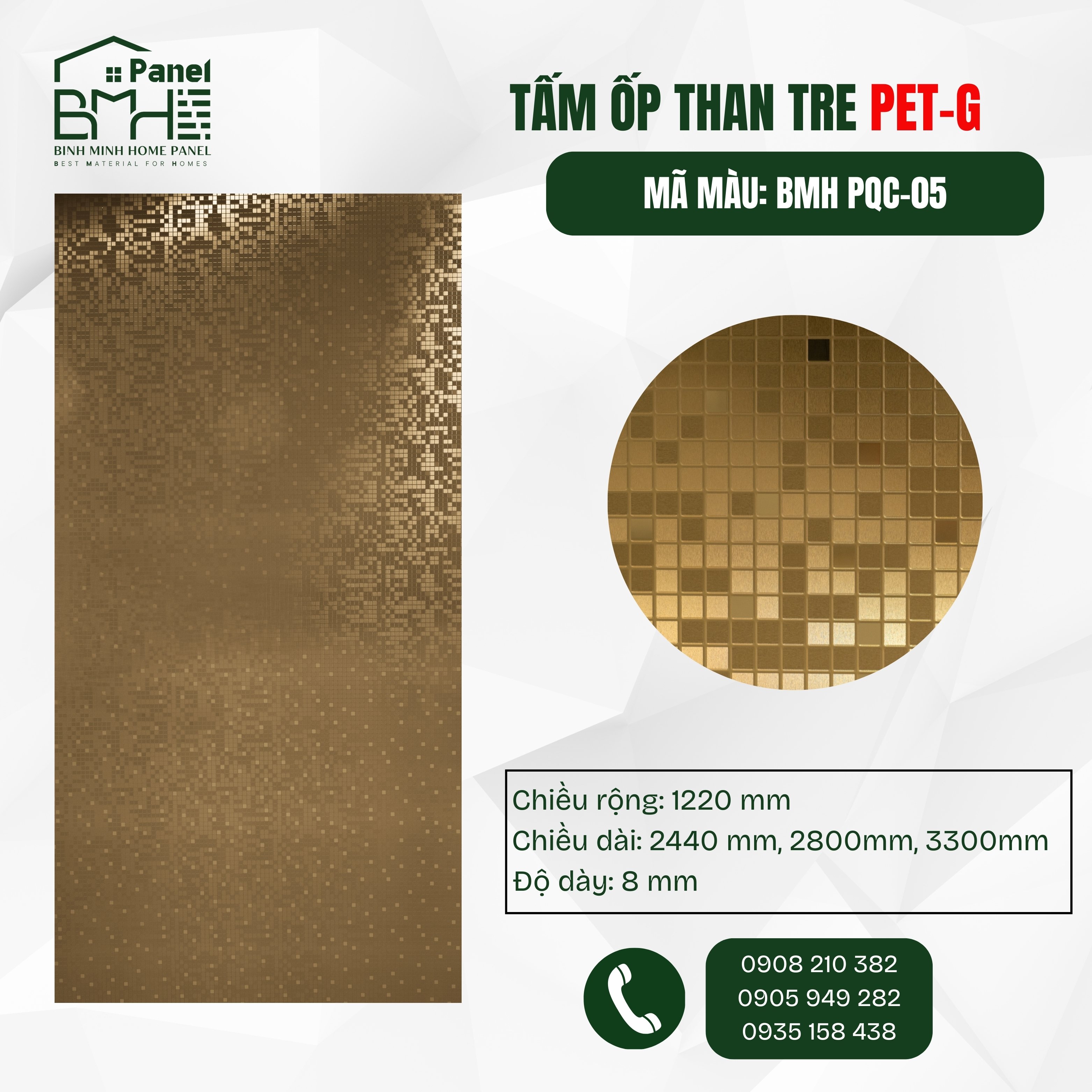 BMH PQC-05 - PET 3D VÀNG GOLD MOSAIC Ô VUÔNG