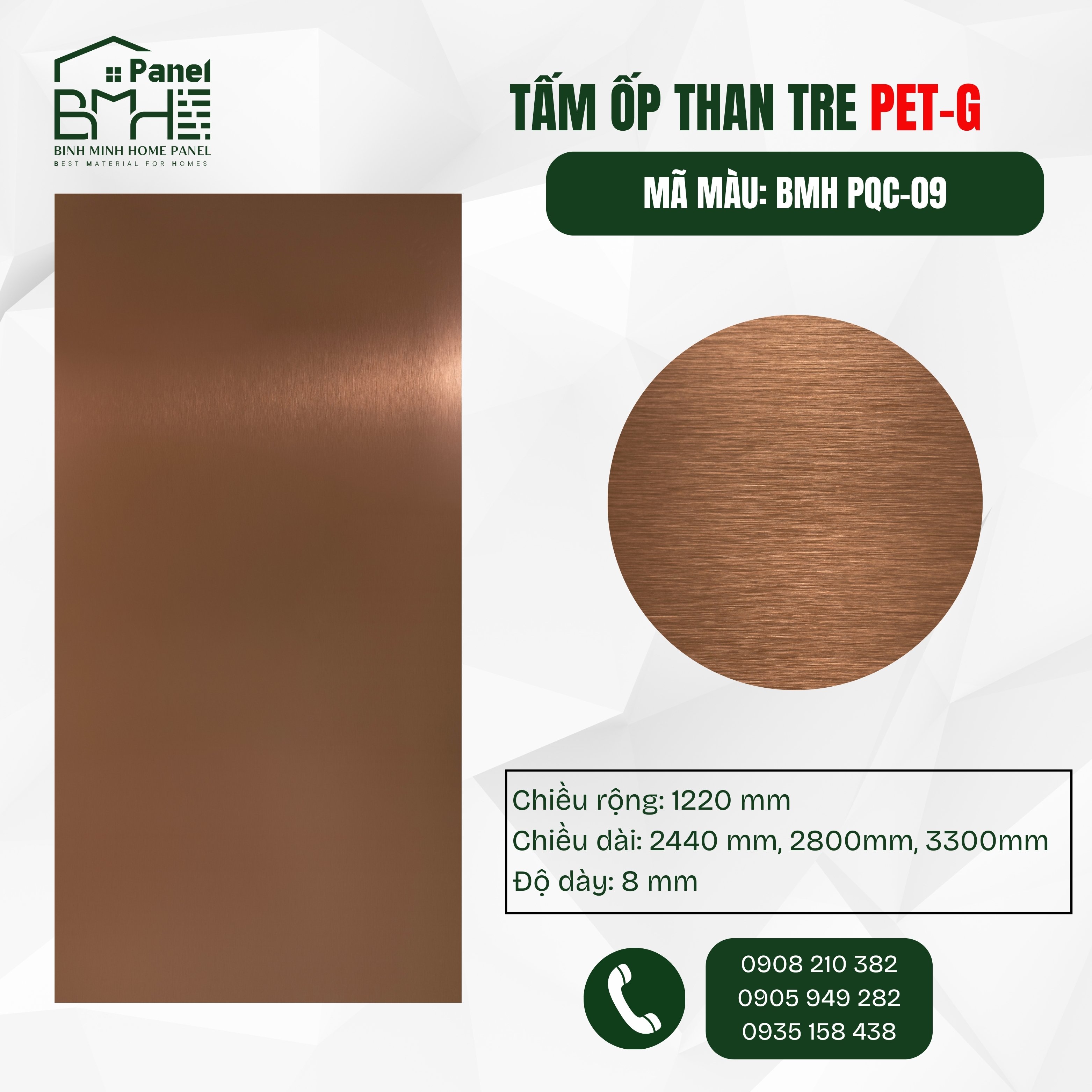 BMH PQC-09 - PET 3D VÀNG CHAMPAGNE VÂN KIM LOẠI XƯỚC THẲNG