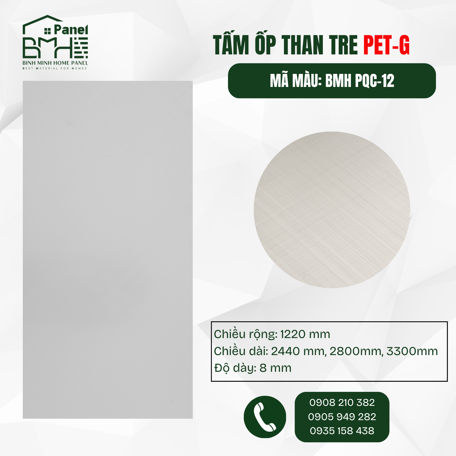 BMH PQC-12 - PET 3D BẠC PLATINUM VÂN KIM LOẠI XƯỚC CHÉO
